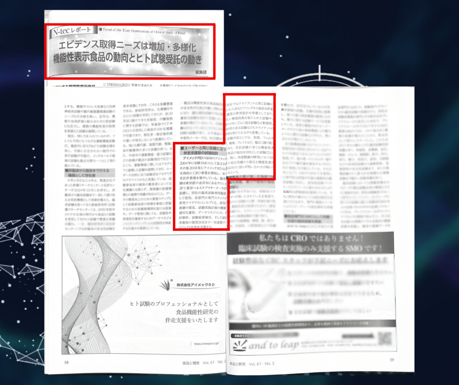 これからの食品開発を考える専門情報誌「食品と開発」2026年2月号の「N-tecレポート エビデンス取得ニーズは増加・多様化 機能性表示食品の動向とヒト試験受託の動き」にて当社についての記事が掲載されました。